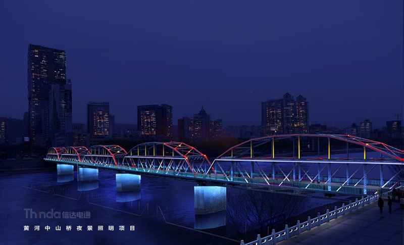 橋梁的夜景亮化設(shè)計是在保障白天景觀的基礎(chǔ)上用燈光塑造橋梁的形象與文化,使其夜景不脫離白天形象而又升華景觀。通常通過燈光點、線、面的藝術(shù)組合,凸顯出橋梁的整體輪廓。重點點亮橋墩、橋身,形成主次分明的照明韻律,并保障來往通行車輛的安全,避免炫光。燈具與橋梁結(jié)構(gòu)形成統(tǒng)一整體,使燈具成為橋體本身的有機(jī)組成部分,白天不見光,夜晚不見燈,達(dá)到燈具與光與橋梁的完美統(tǒng)一。