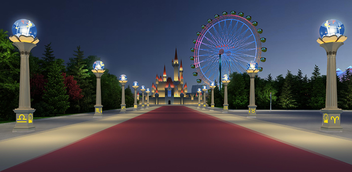 在設計中,信達電通以12星座為元素,分別將星座圖案及形象圖至于燈柱底座及頂部,并通過現(xiàn)代工藝實現(xiàn)其夜間景觀效果。
