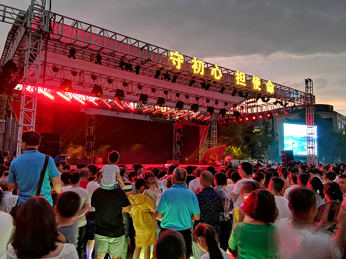 7月1日,千名黨員齊聚蘇溪鎮孝義廣場,舉行“黨的光輝照我心”主題文藝匯演暨“光明之都”亮燈儀式。