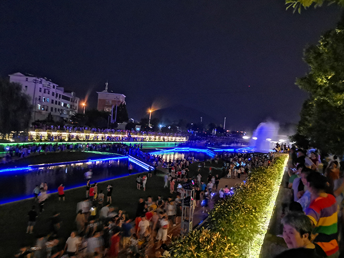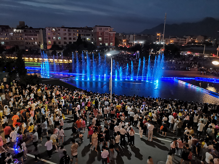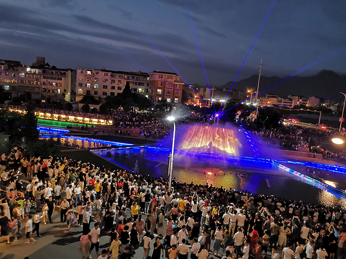 大陳江景觀帶音樂噴泉和水幕電影精彩呈現,吸引了上萬居民圍觀。