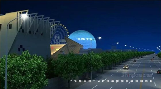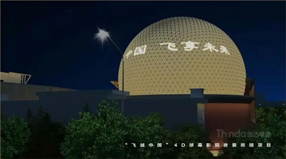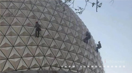 隨著球幕外立面光色切換,“我愛你中國(guó)”、“飛覽天下飛越中國(guó)”等主題字幕滾動(dòng)播出。為實(shí)現(xiàn)預(yù)期的設(shè)計(jì)效果,信達(dá)團(tuán)隊(duì)多次夜間試燈。