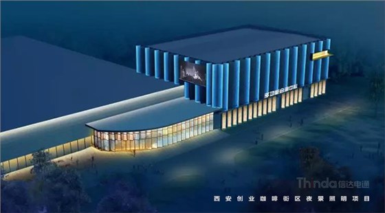 信達(dá)電通在2017年完成了眾多大型城市亮化項(xiàng)目,其中濃墨重彩的一筆當(dāng)屬西安創(chuàng)業(yè)咖啡街區(qū)的亮化。