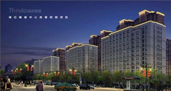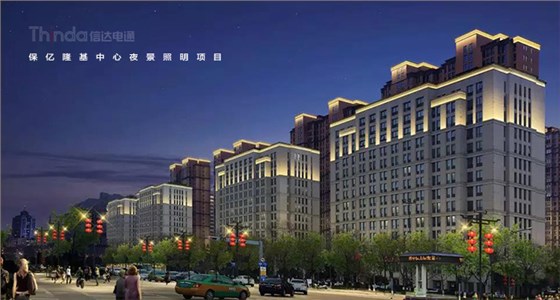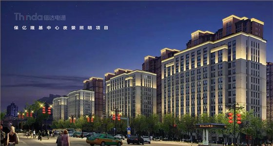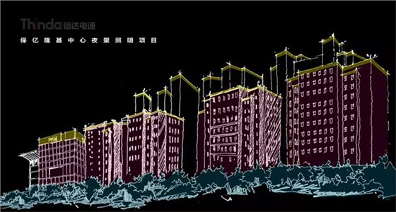 信達(dá)電通對(duì)保億隆基中心和風(fēng)景御園等周?chē)ㄖ求w進(jìn)行亮度規(guī)劃,樓體頂部采用一級(jí)照明,突出建筑頂部結(jié)構(gòu),營(yíng)造天際線的效果。