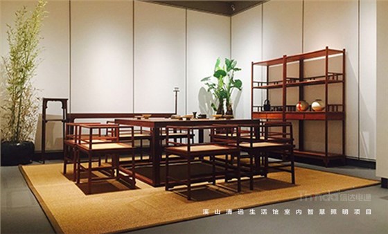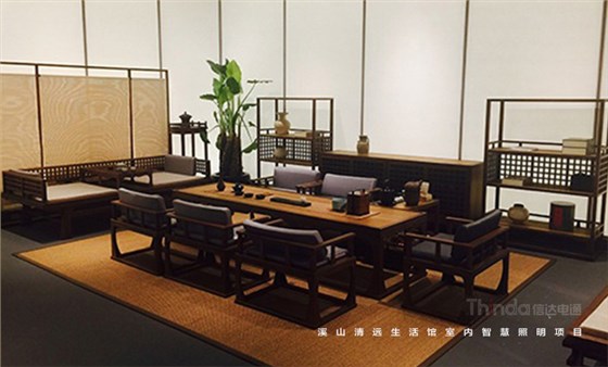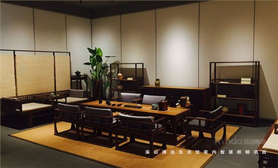 溪山清遠生活館是其公司在北京朝陽區設立的明式、宋代家具主題生活館。溪山清遠探究家具,是探究一種回歸。俗韻已行,塵網誤落,陶淵明欣慨之意,宜適今日。看紛紛擾擾,無休無歇,勞心廢形,永無止息。溪山清遠就是在居住意境上去建設一條回歸的曲徑,精簡,守靜,歸真。信達科技是溪山清遠生活館室內空間照明的設計及施工、控制系統一體化服務單位。