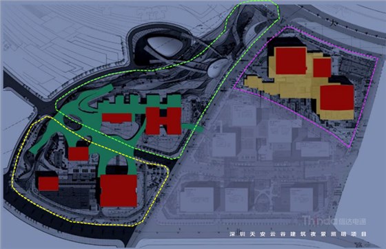 深圳天安云谷建筑夜景照明鳥瞰圖