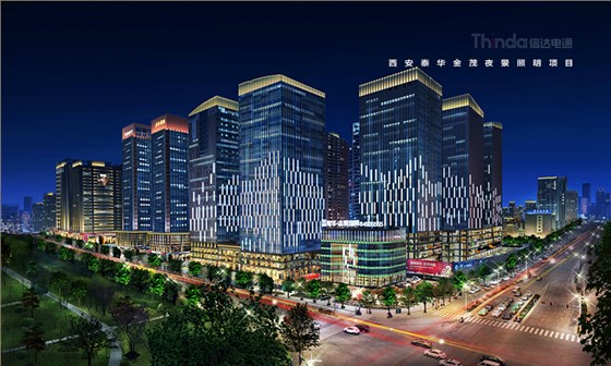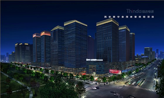 泰華·金貿(mào)國際位于西安高新區(qū)金融圈與商務圈的交匯地帶,與唐城墻遺址公園僅一路之隔。有西安首創(chuàng)山水云陶筑玻璃幕墻,高端商務會所,啟封現(xiàn)代商務的新風范。信達電通根據(jù)辦公樓的戶外亮化照明設計要素和泰華·金貿(mào)國際建筑景觀特點以及所處的地理位置,對泰華·金貿(mào)國際進行戶外亮化照明設計改造工作。改變了泰華·金貿(mào)國際之前的色系昏暗現(xiàn)狀,增加了建筑的外立面整體效果及廣告照明的效果,洗亮泰華·金貿(mào)國際建筑頂部,凸顯天際效果,使泰華·金貿(mào)國際成為西安夜色下一道亮麗的風景。