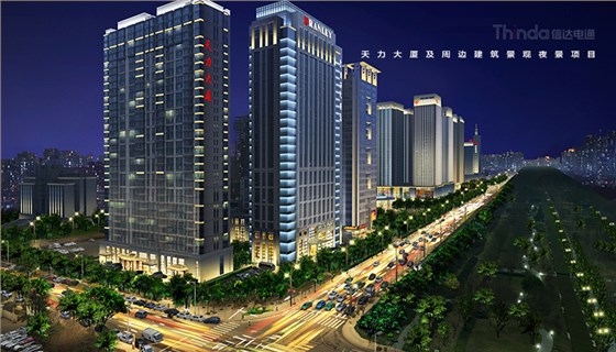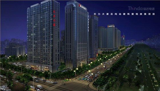 天力大廈正北方向就是西安高新區(qū)有名的吉朗麗酒店,吉朗麗酒店的夜景照明亮化也是西安高新區(qū)城市亮化中的一部分,但是酒店的夜景照明又不同于其他景觀照明,酒店夜景照明設(shè)計(jì)主要體現(xiàn)在酒店建筑外立面的照明上,一個(gè)完美的夜景照明體系能讓人感覺這家酒店非常豪華和上檔次。因此,此次北京信達(dá)電通對(duì)吉朗麗酒店的夜景照明設(shè)計(jì)中,突出建筑頂部的照明,建筑底部以淡淡的黃色光為主,結(jié)合酒店內(nèi)部透光照明給人一種,柔和舒適的感覺,使客人有種溫馨,高雅,回家的感覺,而且選用的燈具造型美觀,節(jié)能,先進(jìn),以全新的視覺展現(xiàn)給人們。