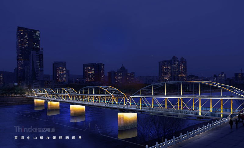 蘭州中山橋歷史悠久,建于清光緒年間,素有“天下黃河第一橋”之稱,全長234米,寬7.5米。信達邀請橋梁建筑設計師和信達照明設計師聯合主筆,暖黃光和藍光為主色調,形成和諧夜景氛圍,既滿足夜間基礎照明照度,又通過燈光渲染將大橋體量在夜間凸顯,重拾大橋風度。