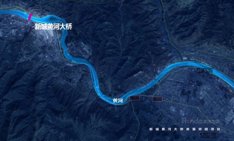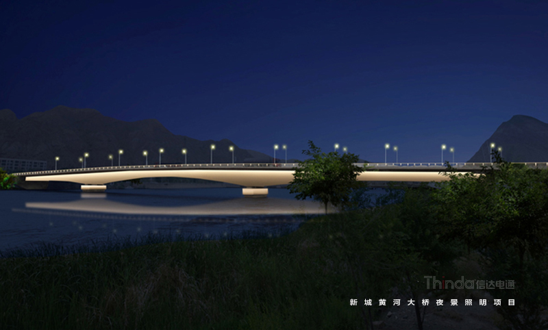 新城黃河橋是蘭州市對外交通西干線的重要樞紐,信達采用簡單的照明手法表現橋體的結構,凸顯橋體的敦實與厚重之感。暖黃光與彩繪圖案在橋底相繼呈現,展現大橋的不同形態。