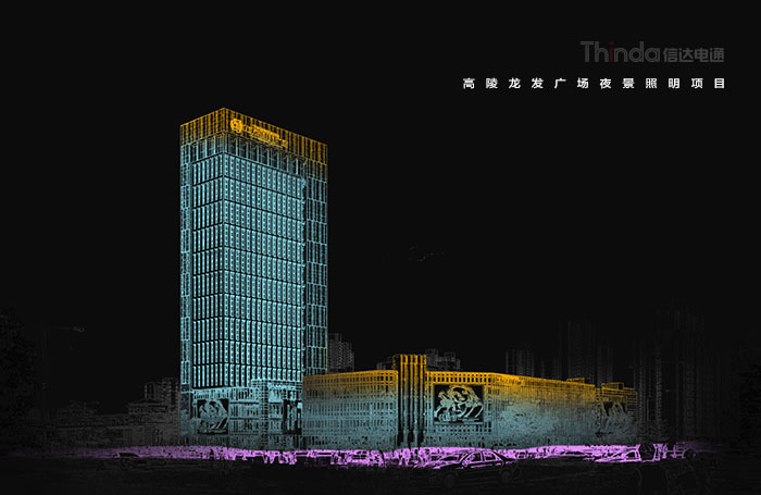 信達(dá)電通以“光韻盛世 影現(xiàn)時(shí)代”為主題,為龍發(fā)時(shí)代廣場量身規(guī)劃夜景,打造一場商業(yè)與藝術(shù)的燈光盛宴。