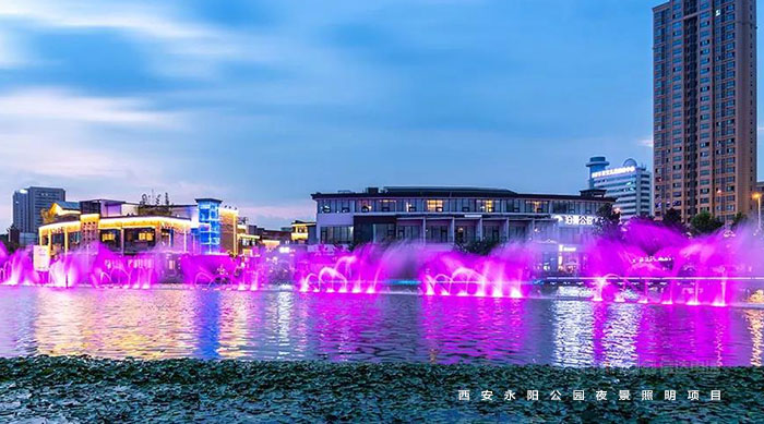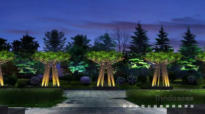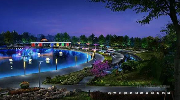 永陽(yáng)公園是西安一個(gè)別開生面的科技公園,因地處唐代長(zhǎng)安永陽(yáng)坊而得名,位于西安市丈八東路和西灃公路十字路口,是由西安高新技術(shù)產(chǎn)業(yè)開發(fā)區(qū)興建,占地10萬(wàn)平方米,2006年對(duì)外開放。繼2016年完成西安高新區(qū)夜景亮化設(shè)計(jì)之后,信達(dá)電通對(duì)永陽(yáng)公園進(jìn)行夜景照明規(guī)劃設(shè)計(jì)。