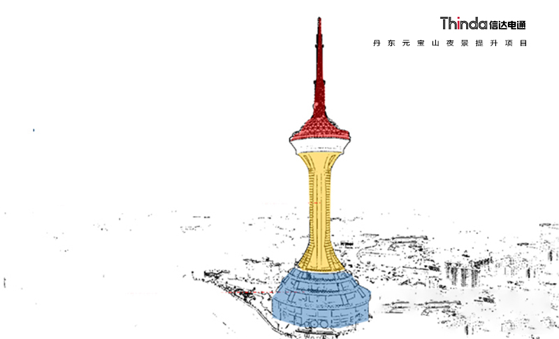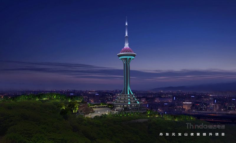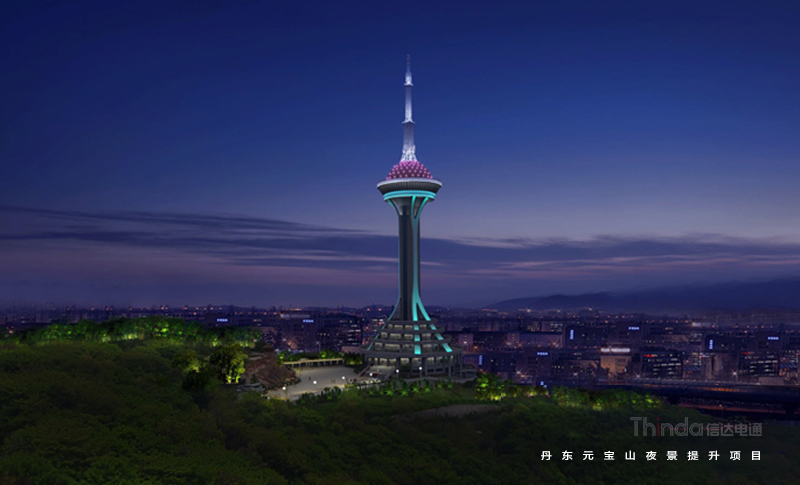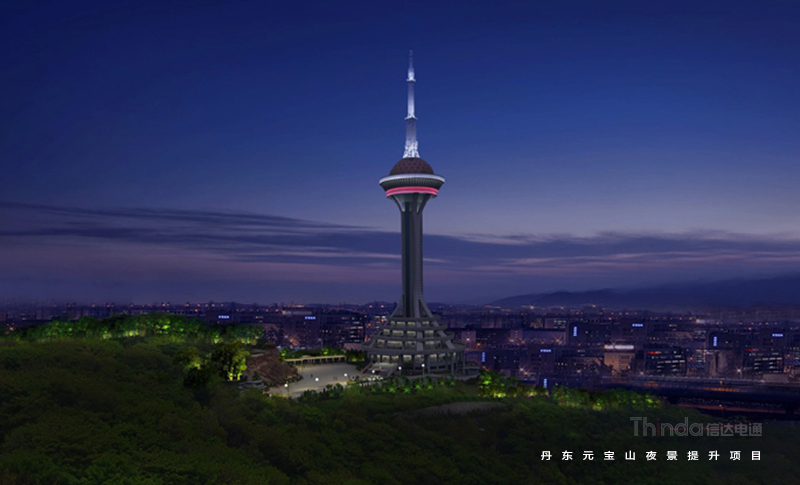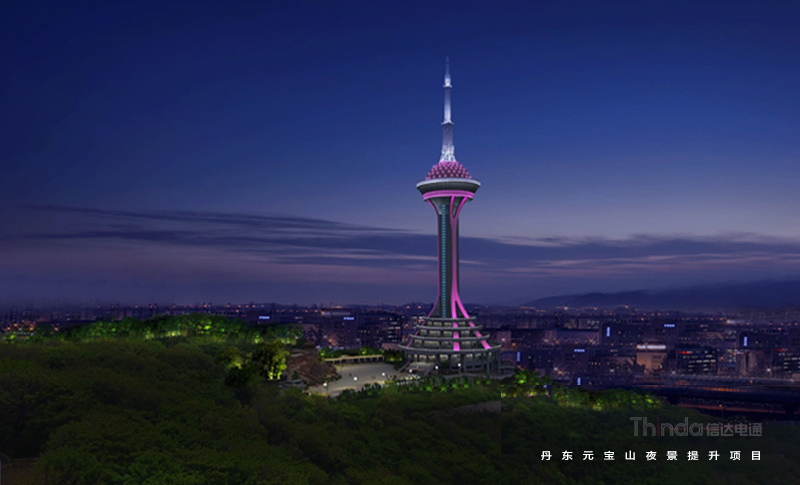 元寶山電視塔建筑風格簡約獨特,識別度較高。信達結合建筑功能屬性,以動靜燈光結合的方式展現電視塔的醒目高度,以及其獨特夜間形態。