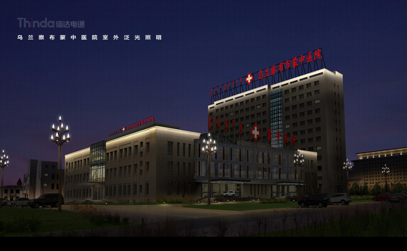 烏蘭察布蒙中醫(yī)院是由政府投資建設(shè)的以突出蒙中醫(yī)特色為重點(diǎn)的綜合性醫(yī)院,位于烏蘭察布市集寧新區(qū)工農(nóng)大街西呼格吉街南,蒙中醫(yī)院的室外泛光照明一方面需要考慮其功能性,同時(shí)在其建筑類型和定位上也要有所不同。