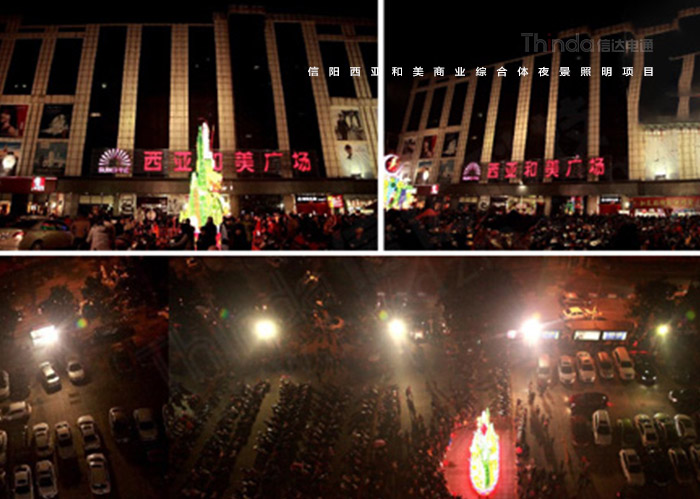 信陽西亞和美商業(yè)樓廣場(chǎng)照明設(shè)計(jì)平日效果及節(jié)日效果: