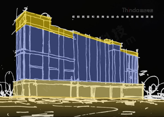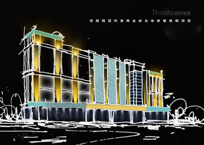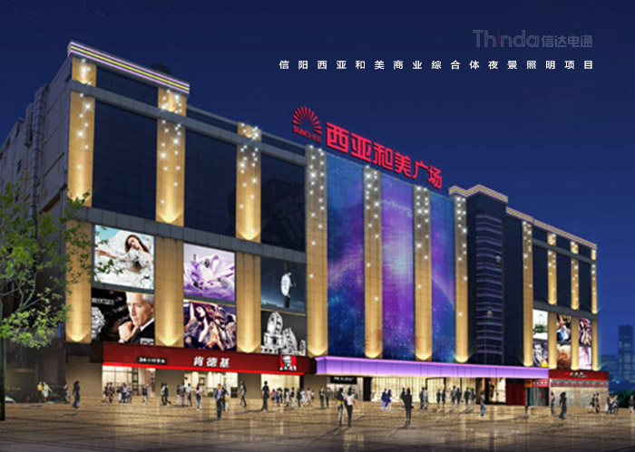 西亞和美商業(yè)廣場(chǎng)地處于河南省信陽市,位于東方紅大道、南臨北京南路、東臨統(tǒng)一街,周邊有鳳凰新世界、東方京城、軸線之廊,位置優(yōu)越,交通便利。這里信陽人民平時(shí)生活?yuàn)蕵放c購物餐飲的地方,也是IGA中國區(qū)優(yōu)秀零售商。目前商業(yè)廣場(chǎng)夜景照明已經(jīng)跟不上整體的商業(yè)需求,急需進(jìn)行照明設(shè)計(jì)施工改造升級(jí),為此信陽西亞和美業(yè)主聯(lián)系到信達(dá)電通,雙方根據(jù)本案開展照明設(shè)計(jì)施工合作。